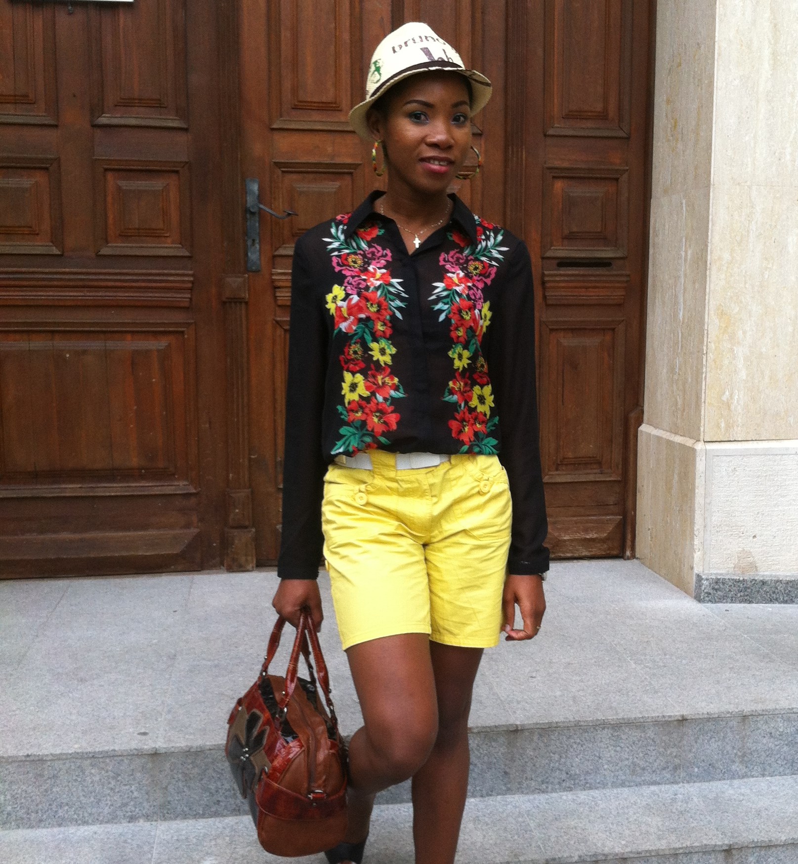 This is another picture I took prior to travelling but couldn’t upload it earlier. I love the flower details on the shirt because it can go so well with many things: thanks to the colours of the flowers. I wore this yellow short to make the colour pop out more.