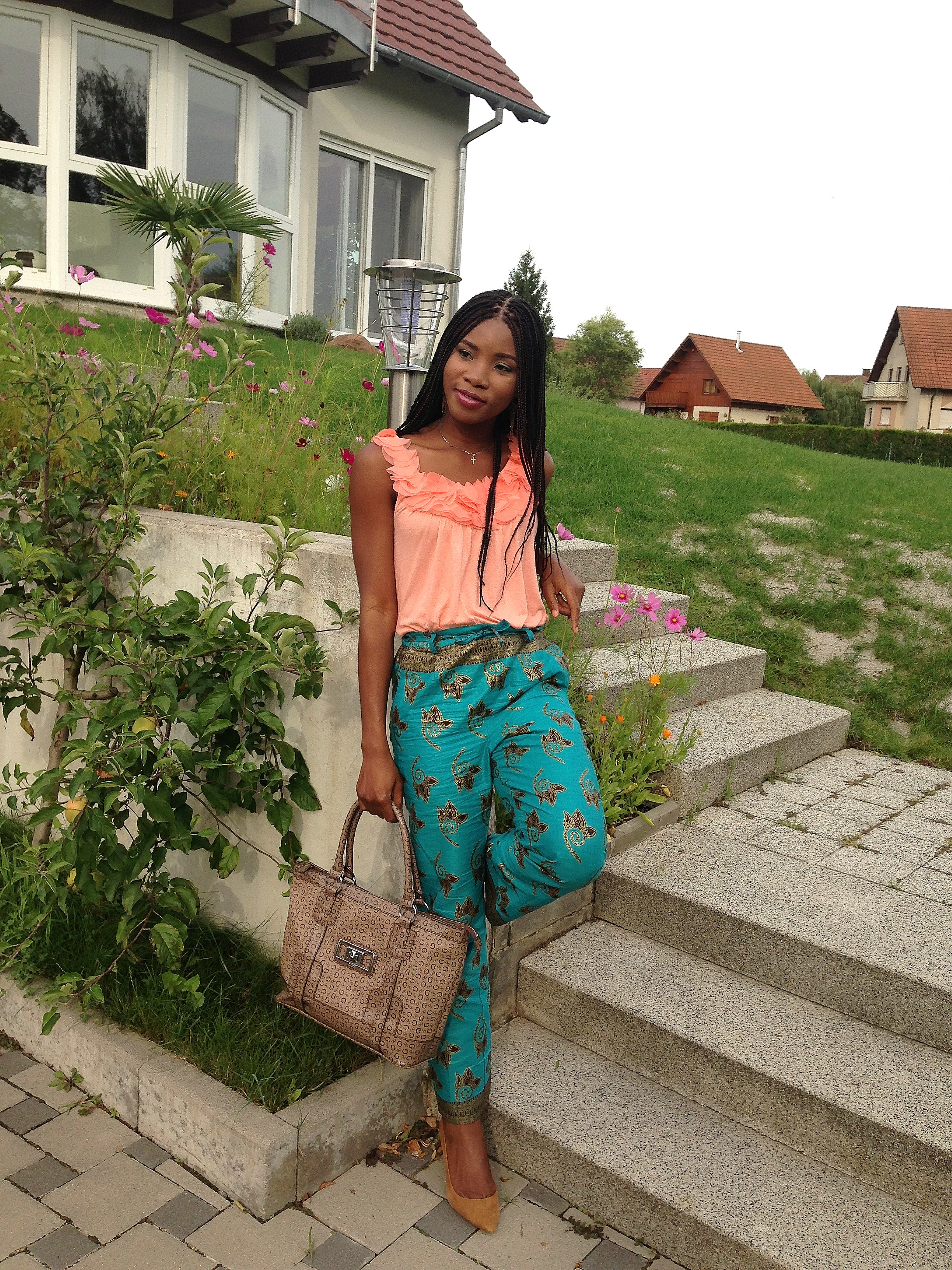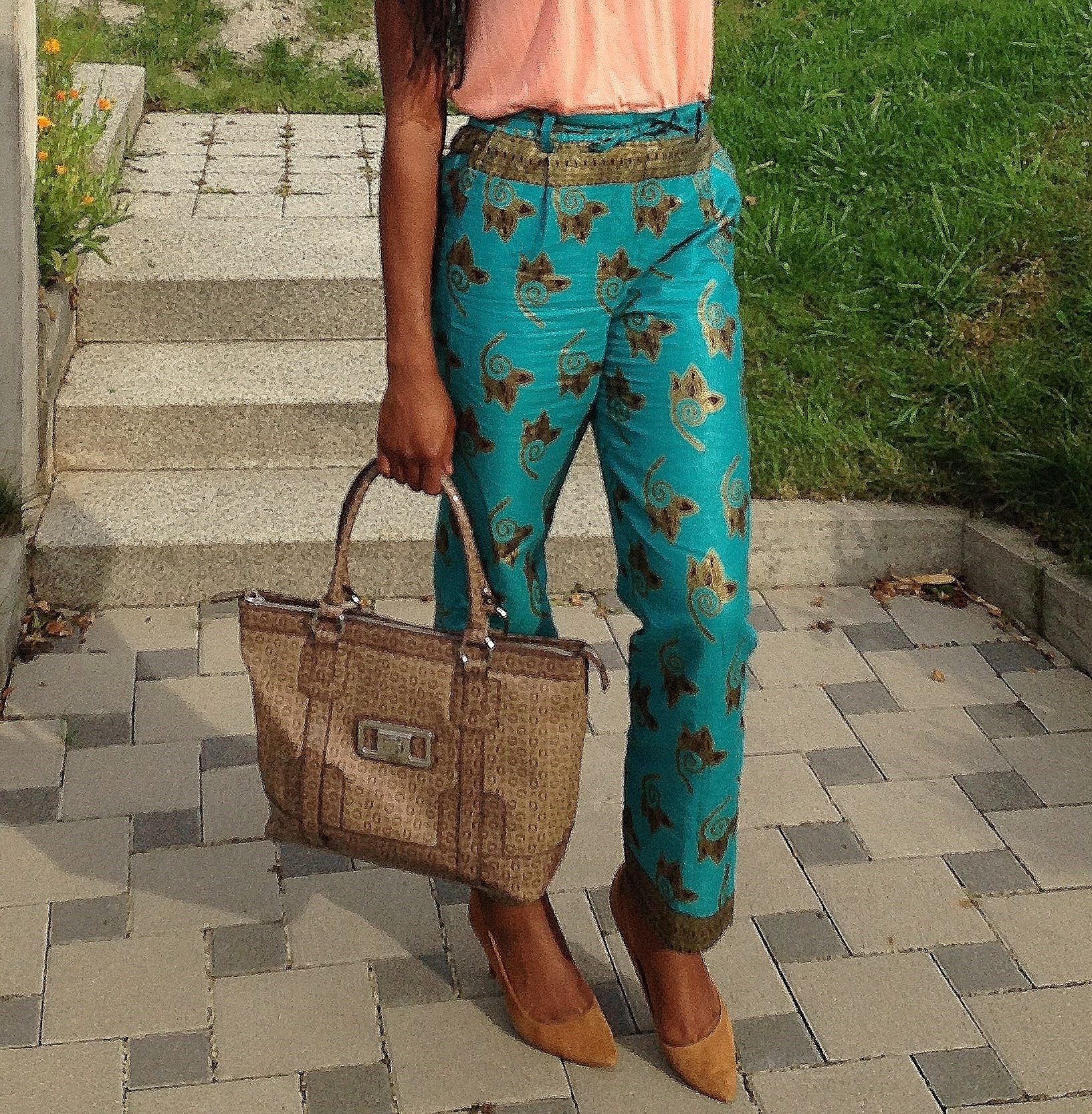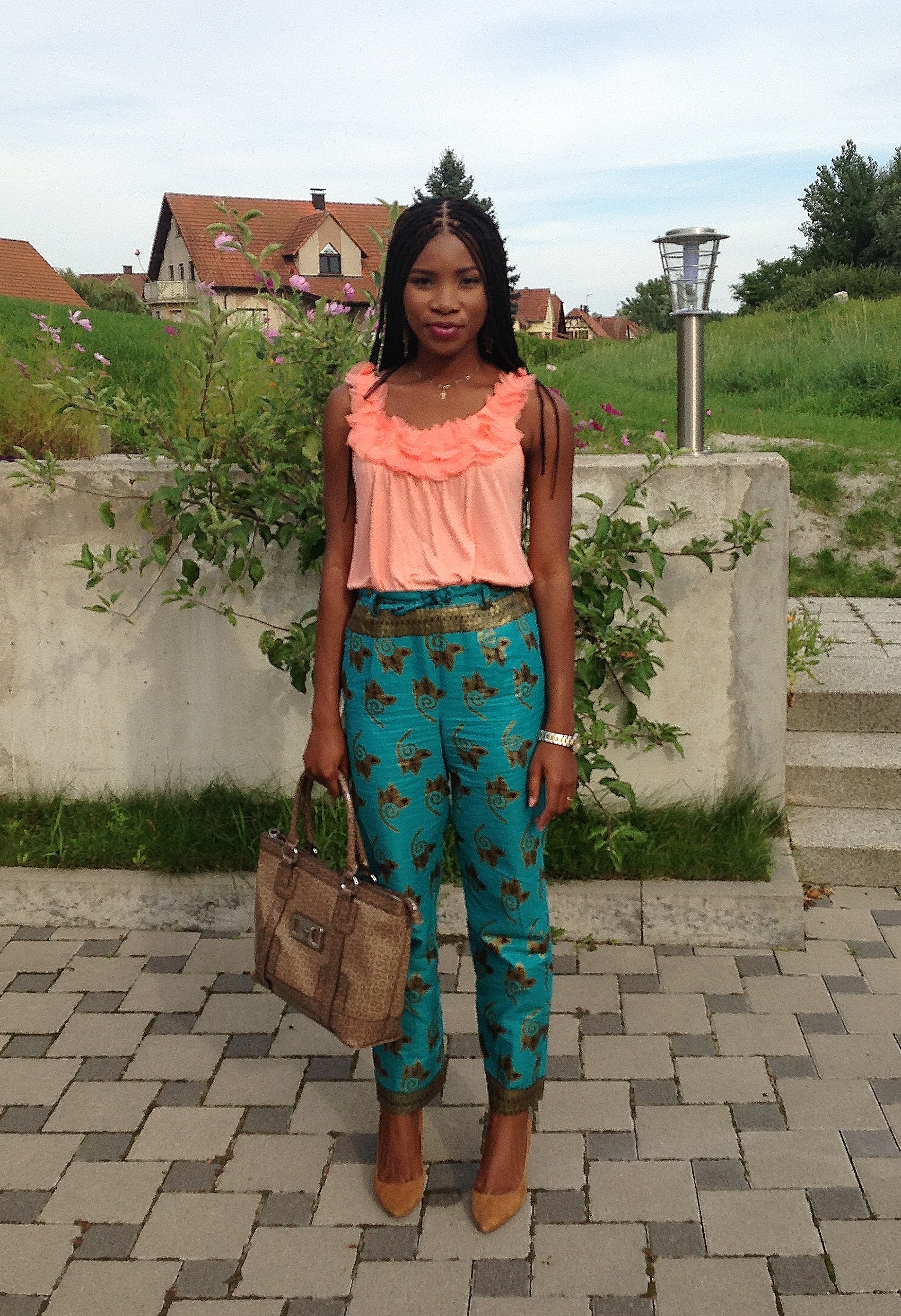 Outfit: African print Trouser// Guess Handbag // 5th Avenue Shoes by Deichmann // Mamisu top.