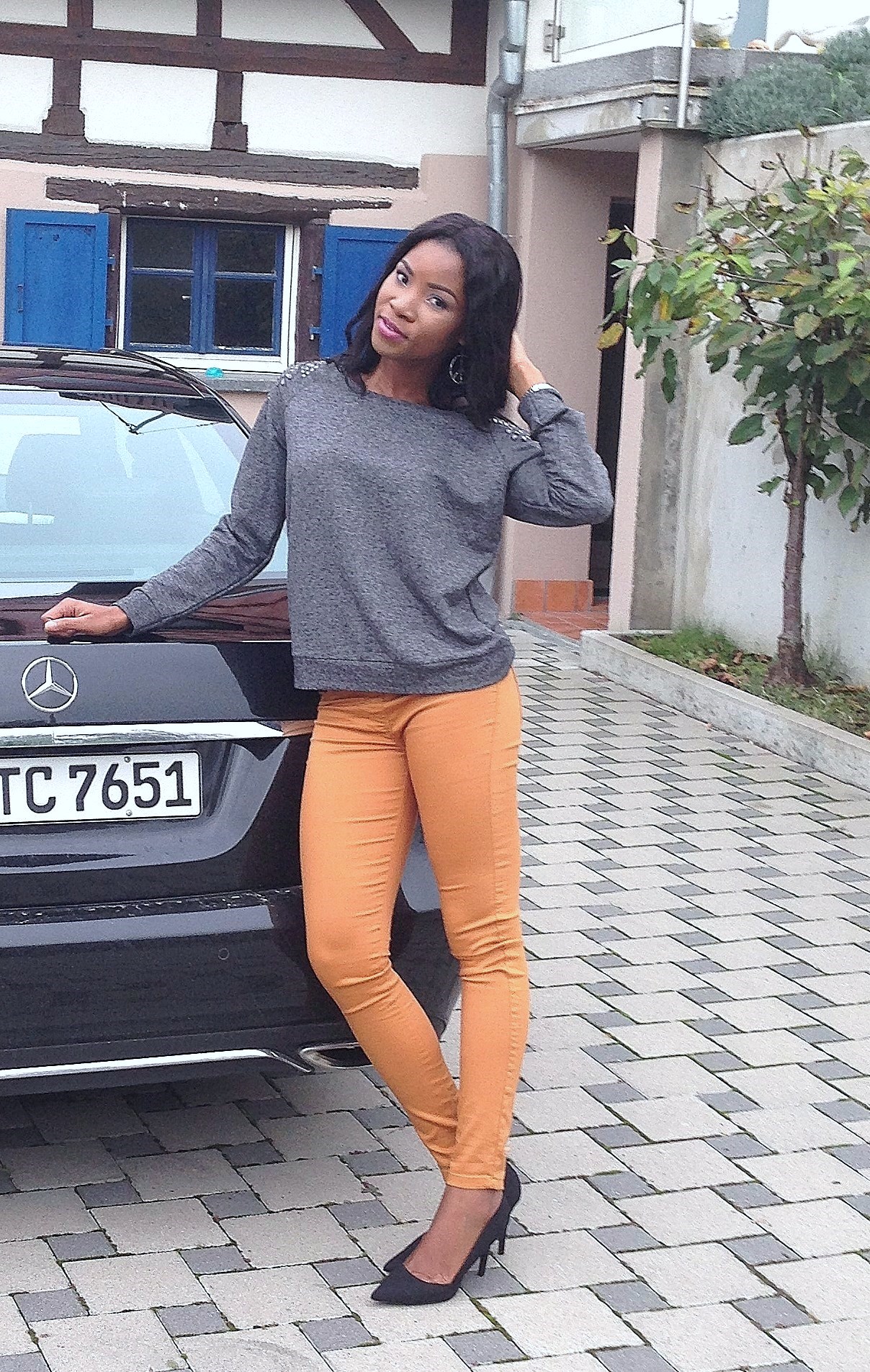 This post is featuring something simple but also formal at the same time. I posted a blog of this lovely mustard trouser in a casual look, but for a formal look still keeping that simplicity, I styled the trouser with this lovely pullover I got from C&A. For my feet, I decided to wear a black pumps which complimented the look very nice. Adding a black handbag, am I was off to work π