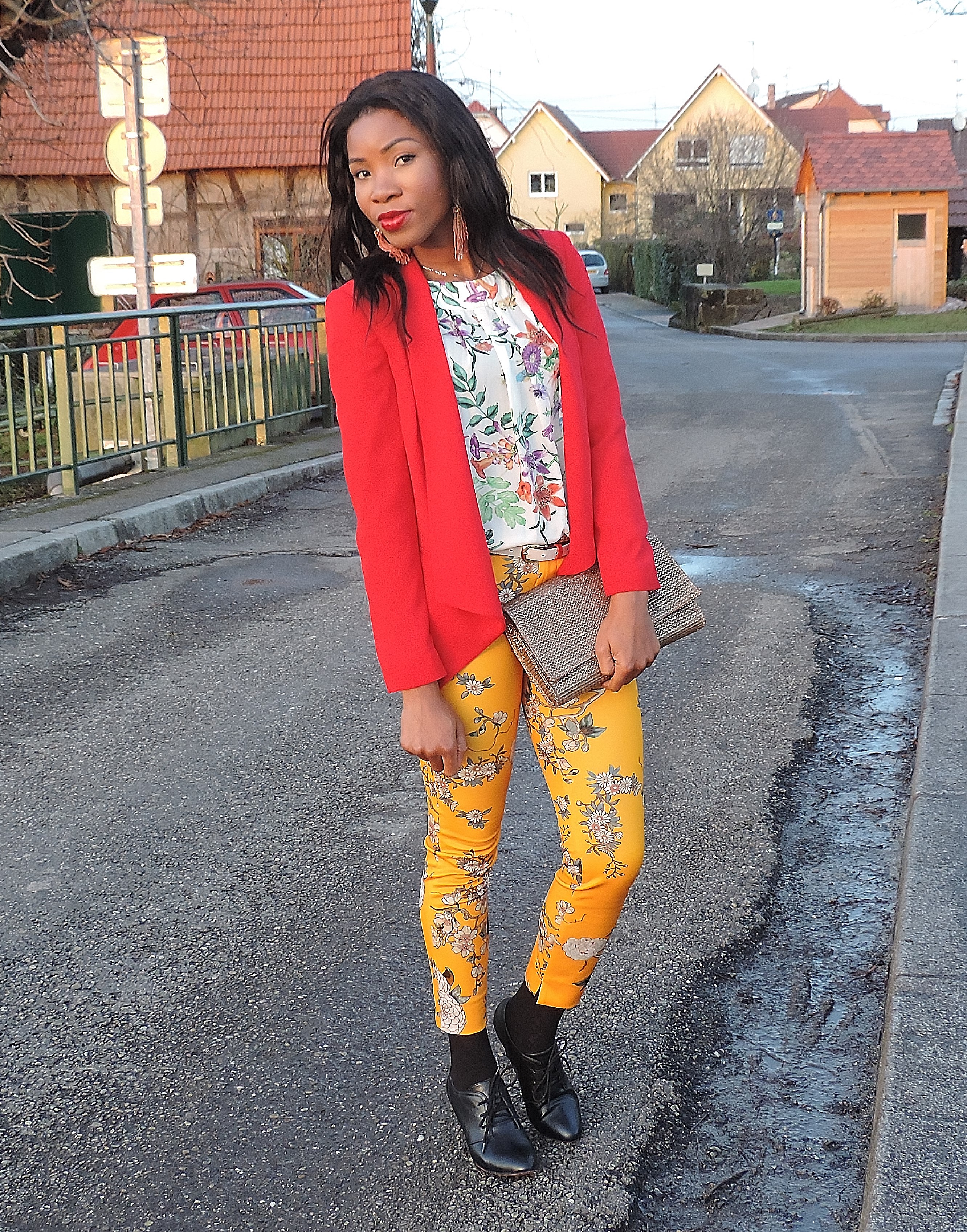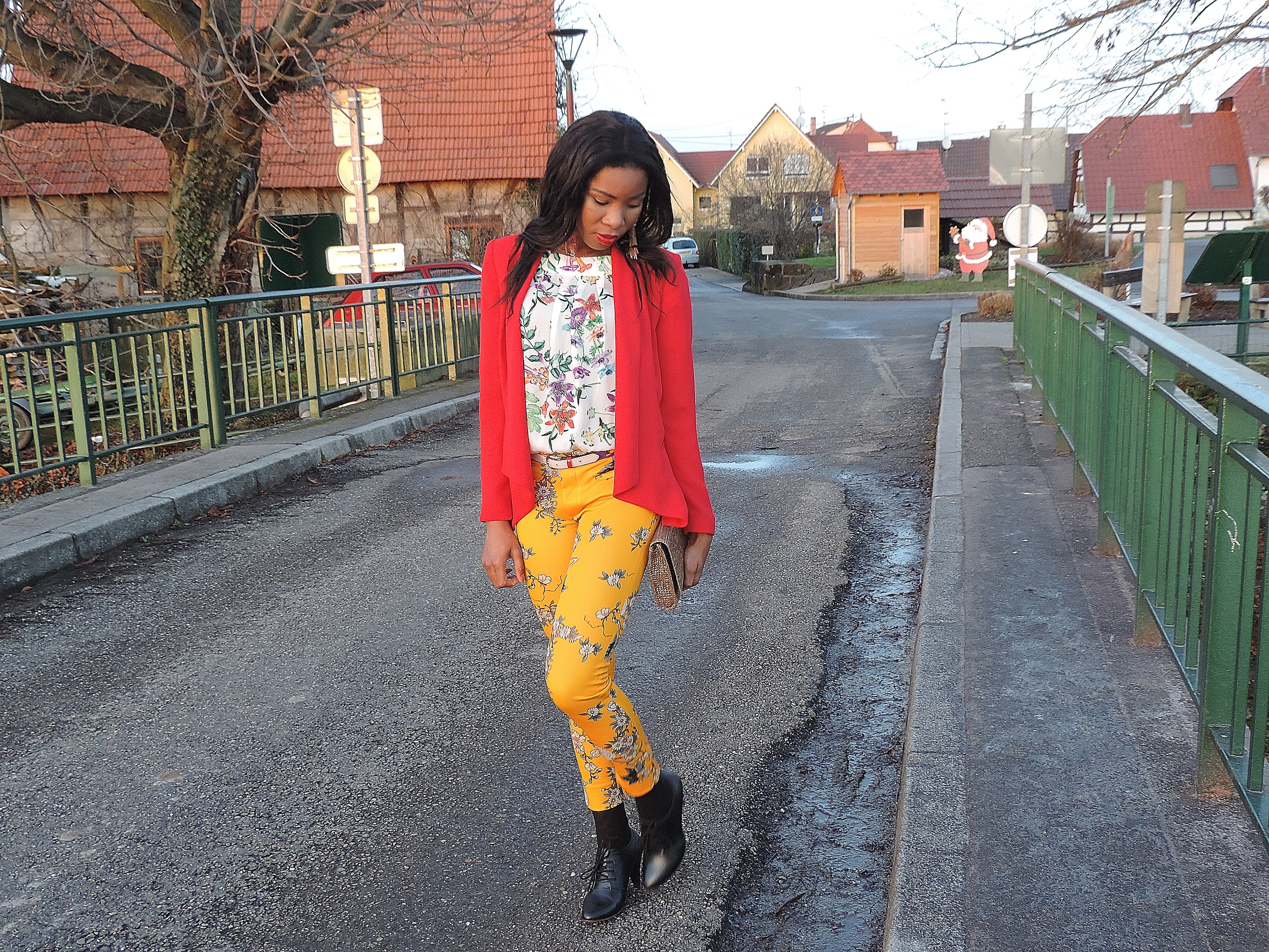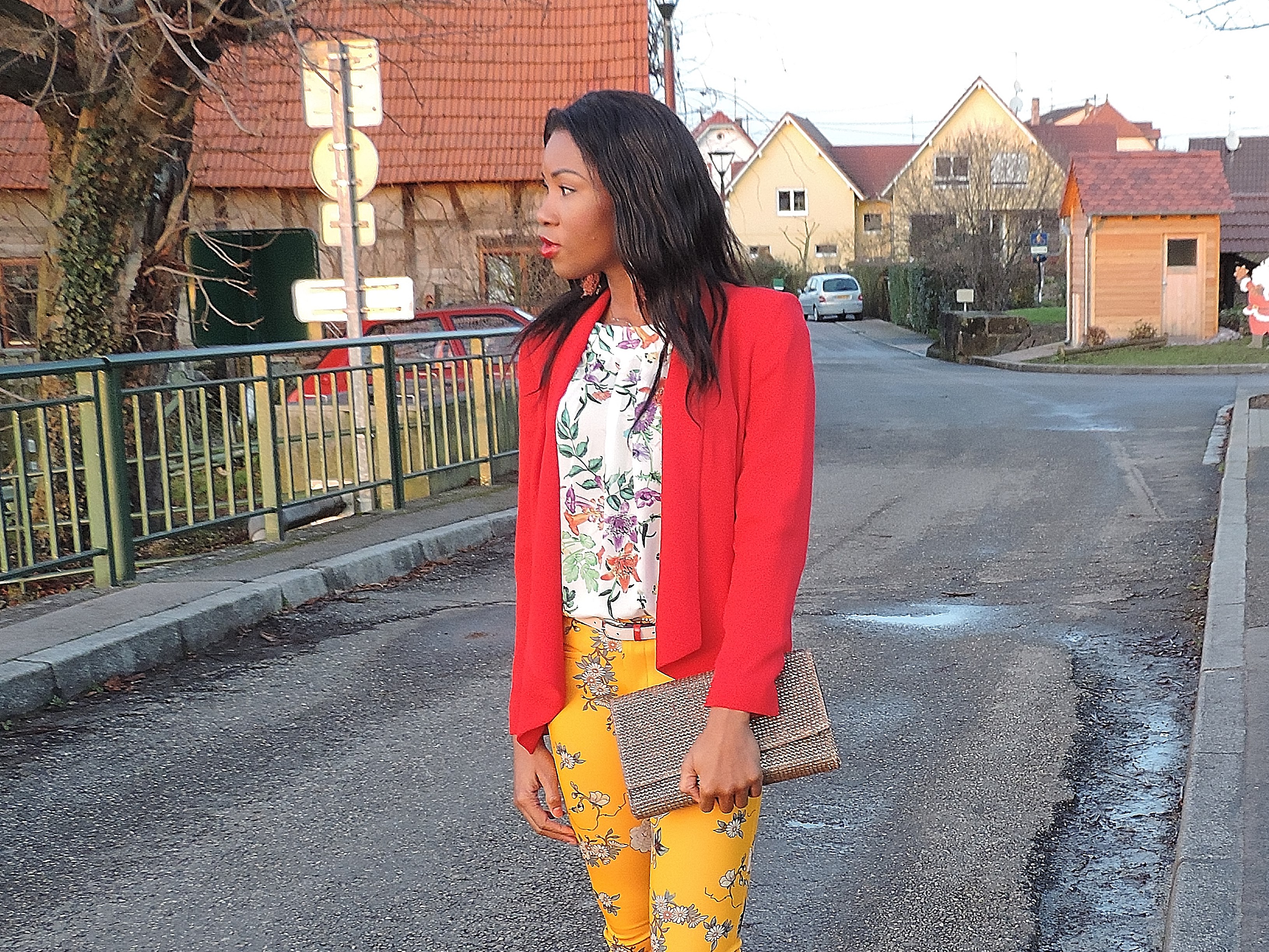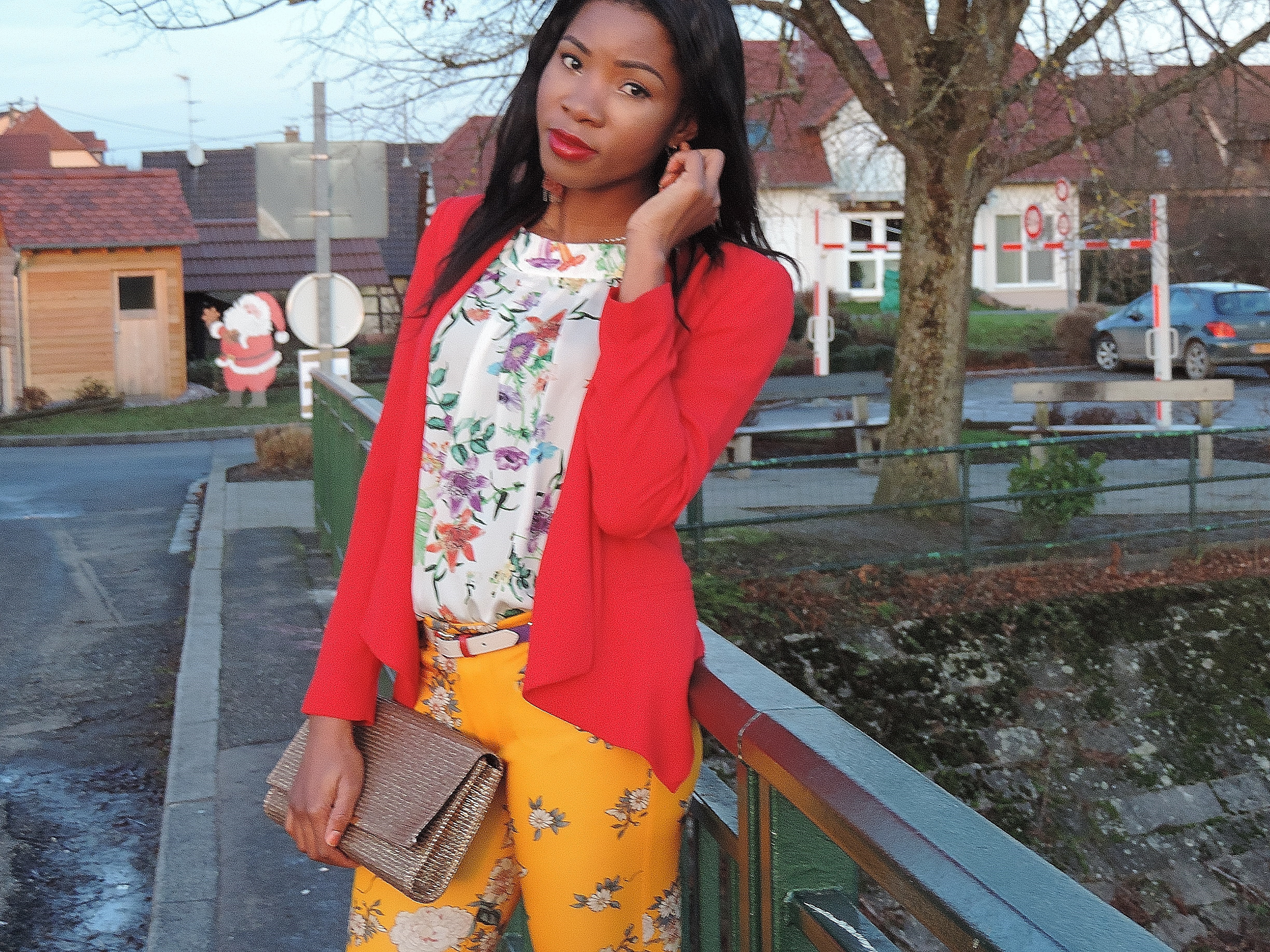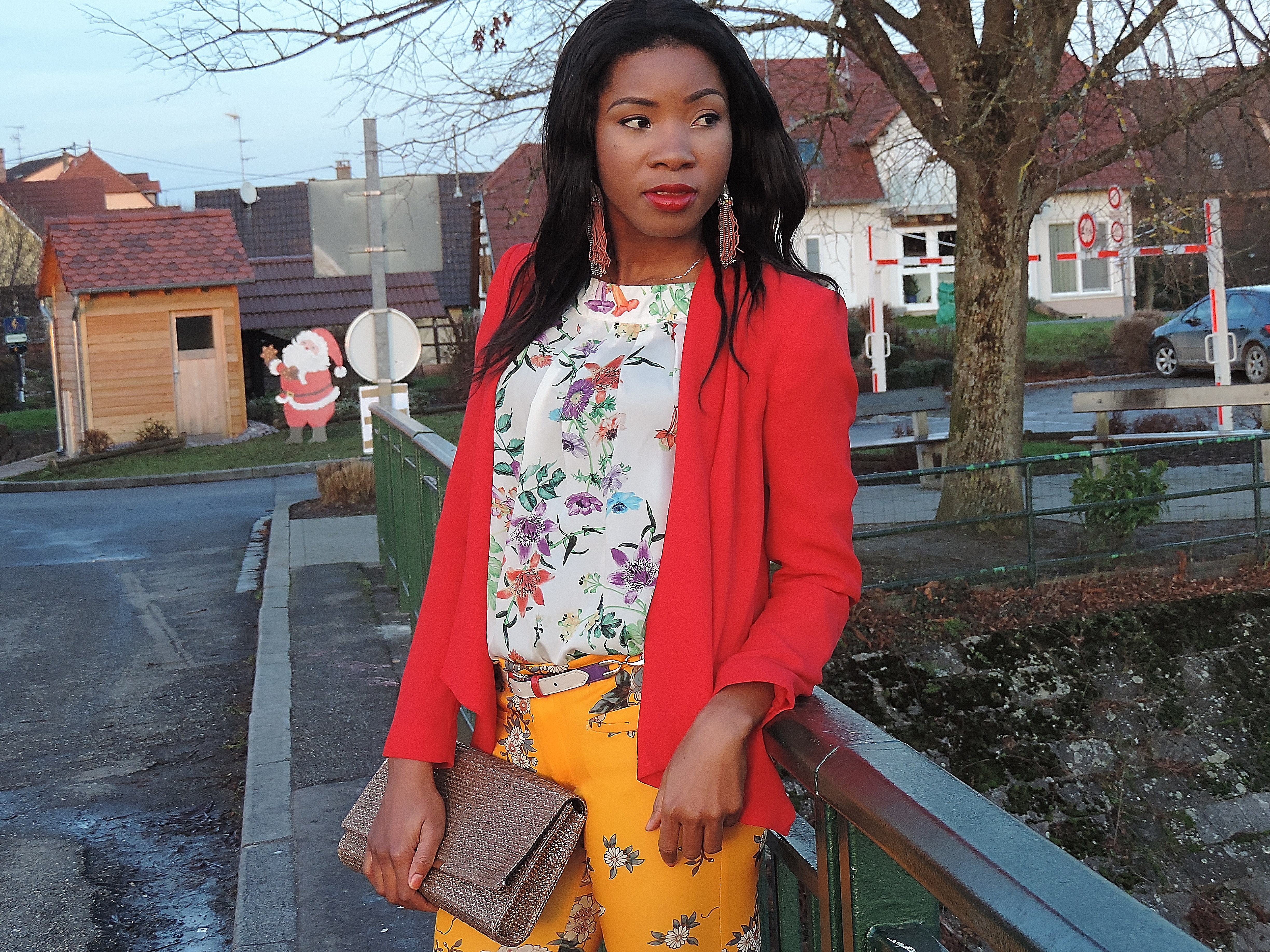 My love for colours has no season, that means I wear colours all year round (lol). This was an outfit I wore during the Christmas season. In this post, I combined two of my lovely floral prints together since we were still in the spirit of celebration and the weather was nice here in France. Complimenting the floral, I wore a red blazer and finished the look with some darker tones just to blend the colours together.