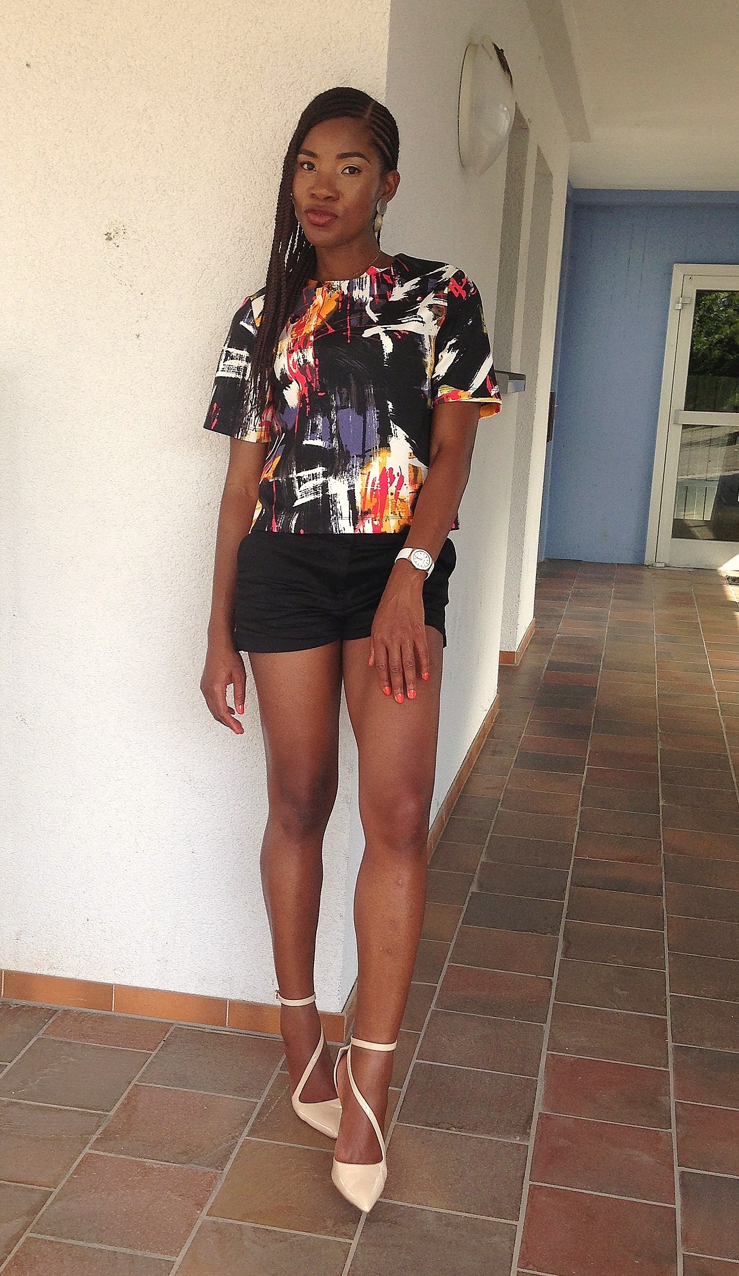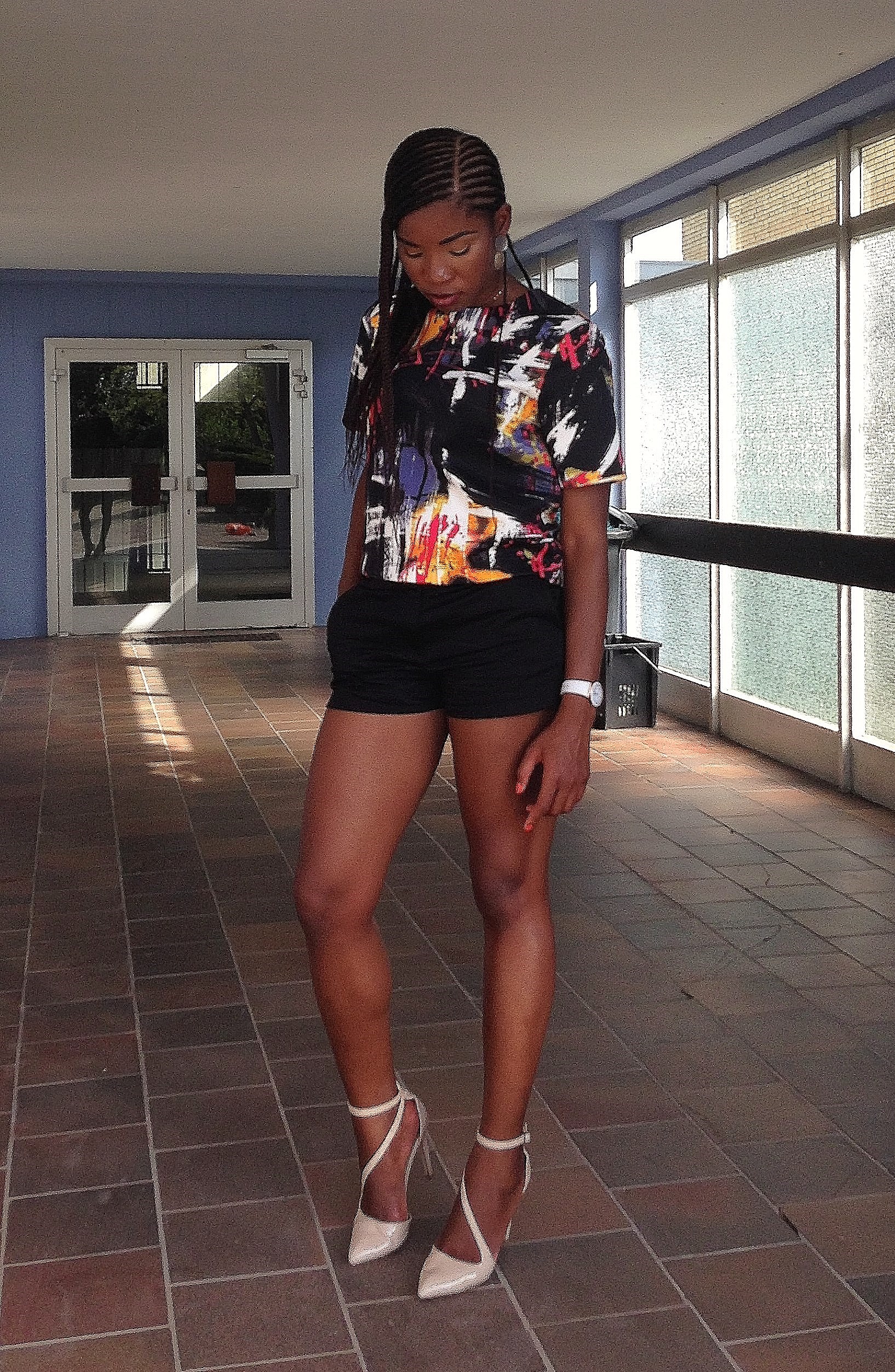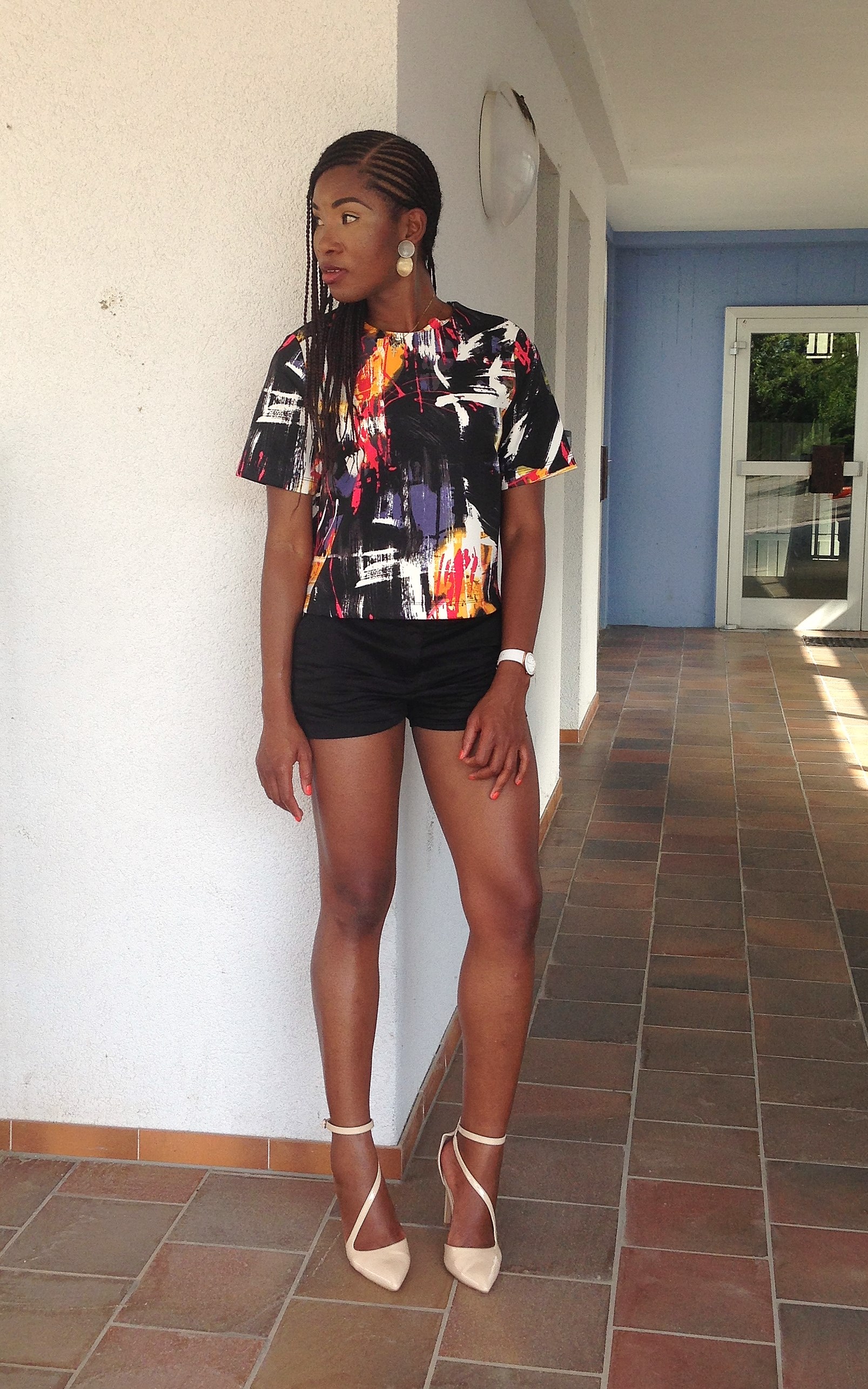 I wore this pretty top over a short. I love the artistic prints on the top cause it could be paired with many things. I complimented the look with a nude sandal and kept my accessories at a minimum.