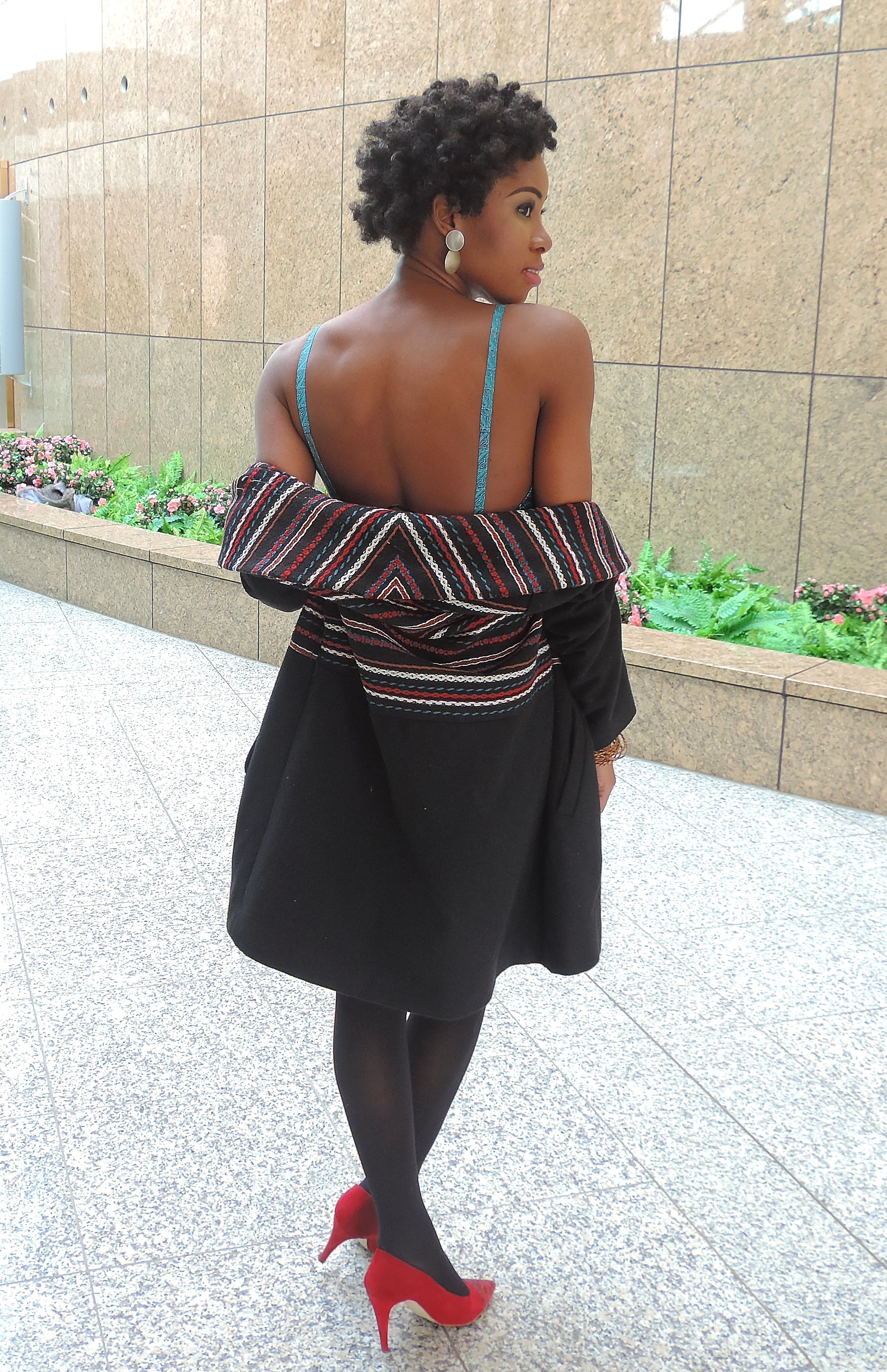 For this post, I went for a show back, low V-Neck short gathered gown. This is something you can wear to a date, occasions and since valentine is around the corner, it goes perfectly well. For the cold, I completed the outfit with some of my winter pieces and a red pumps. For my jewelleries, less is more..