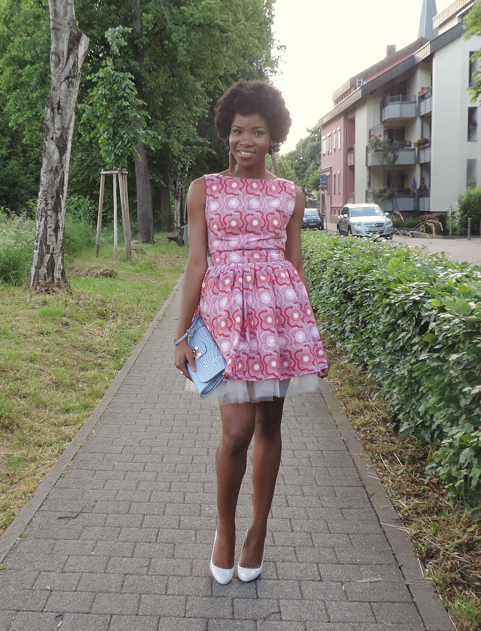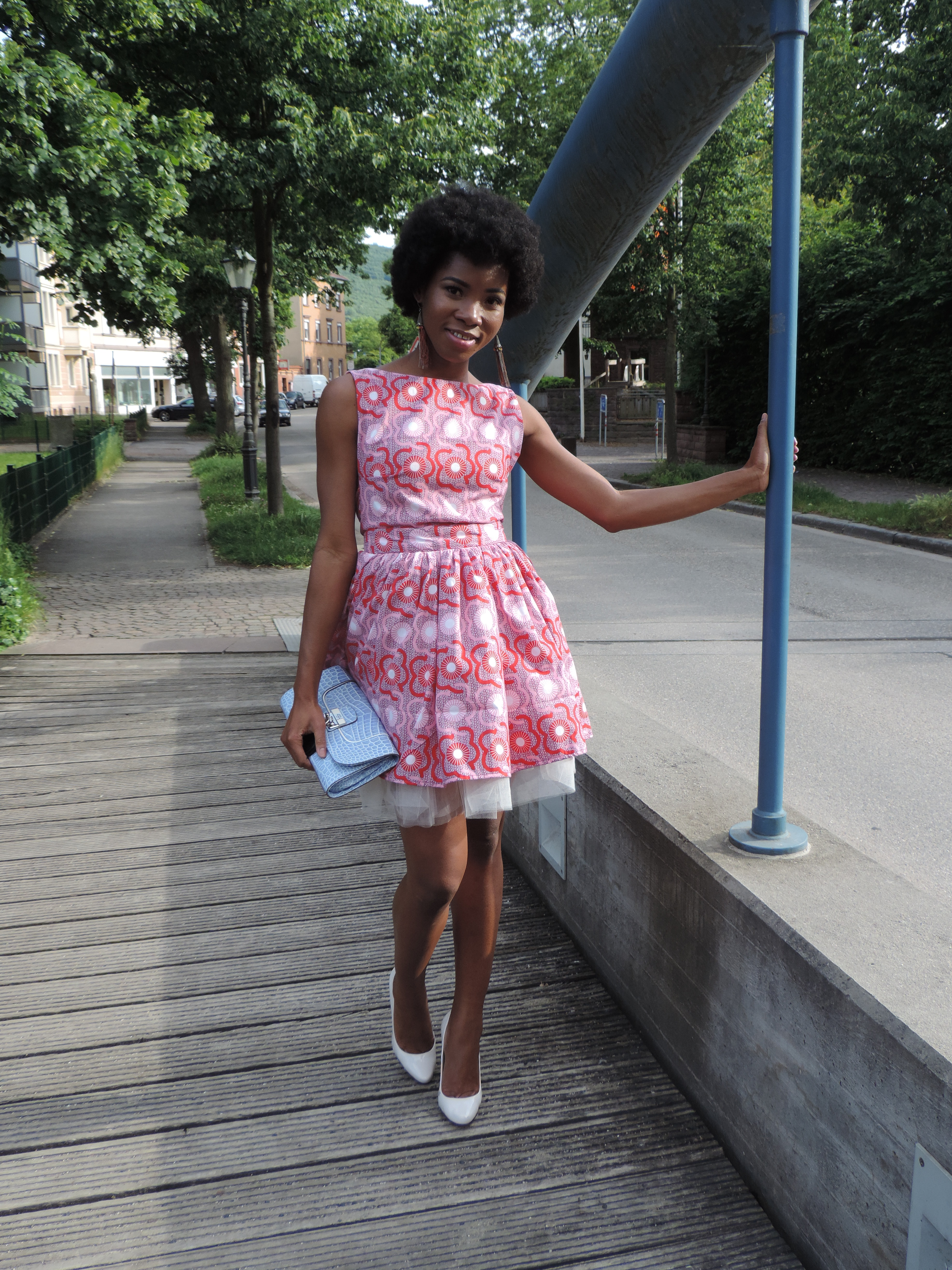 For this post, I was going for a feminine look with a barbie effect. I’m a huge fan of gowns, and I designed this Outfit for a wedding. Here I combined sexiness with a little bit of playfulness and which other way to rock this look without my Afro statement, taking me back to the 60s. I finished off with a neutral pumps and a blue clutch.