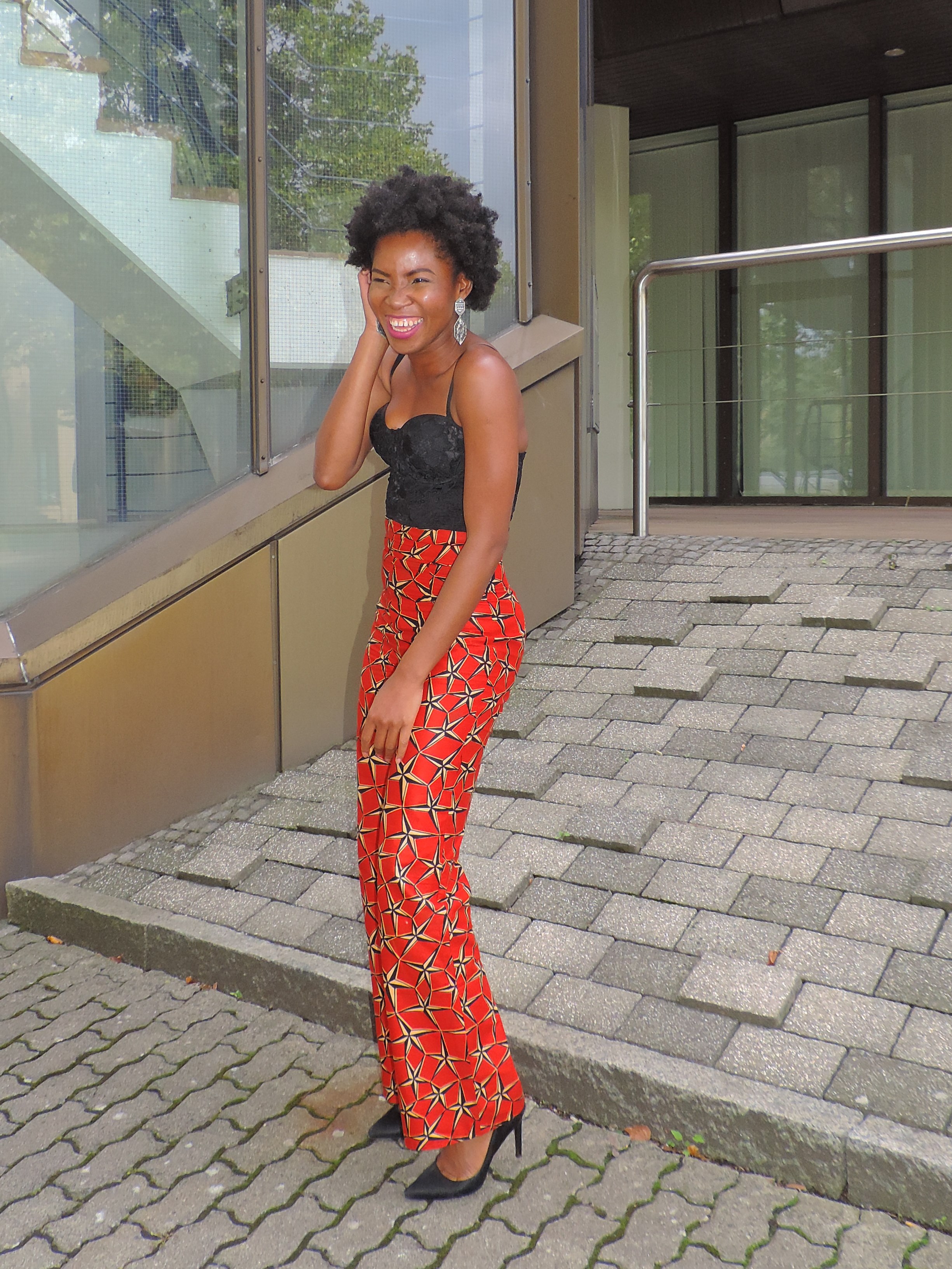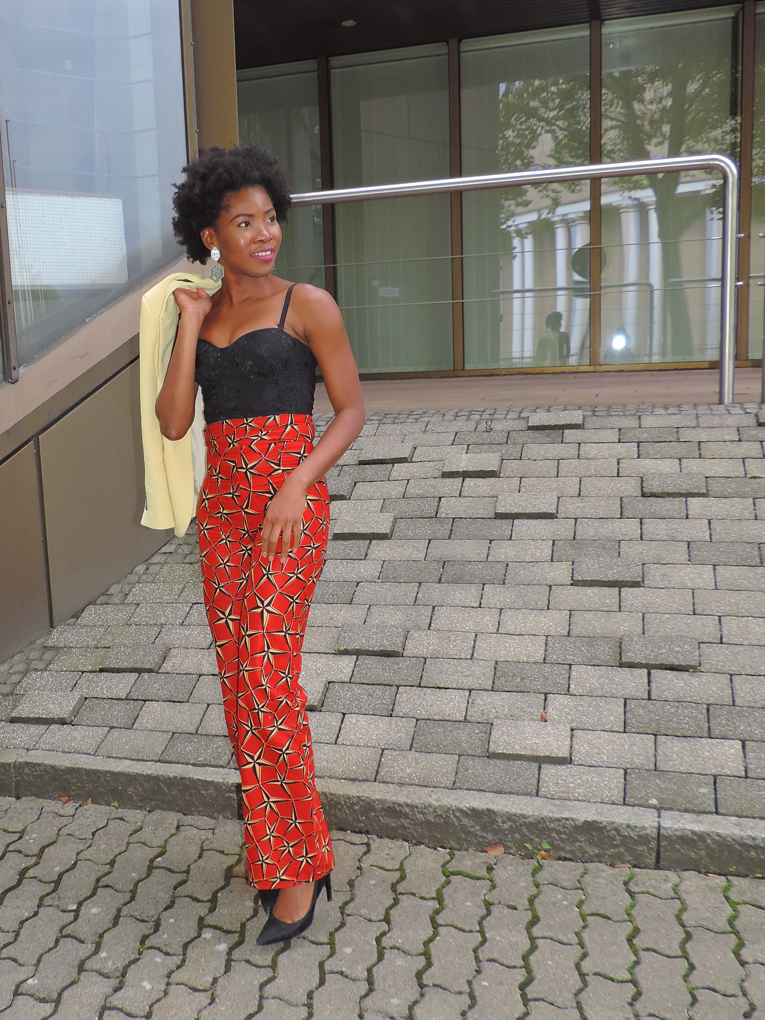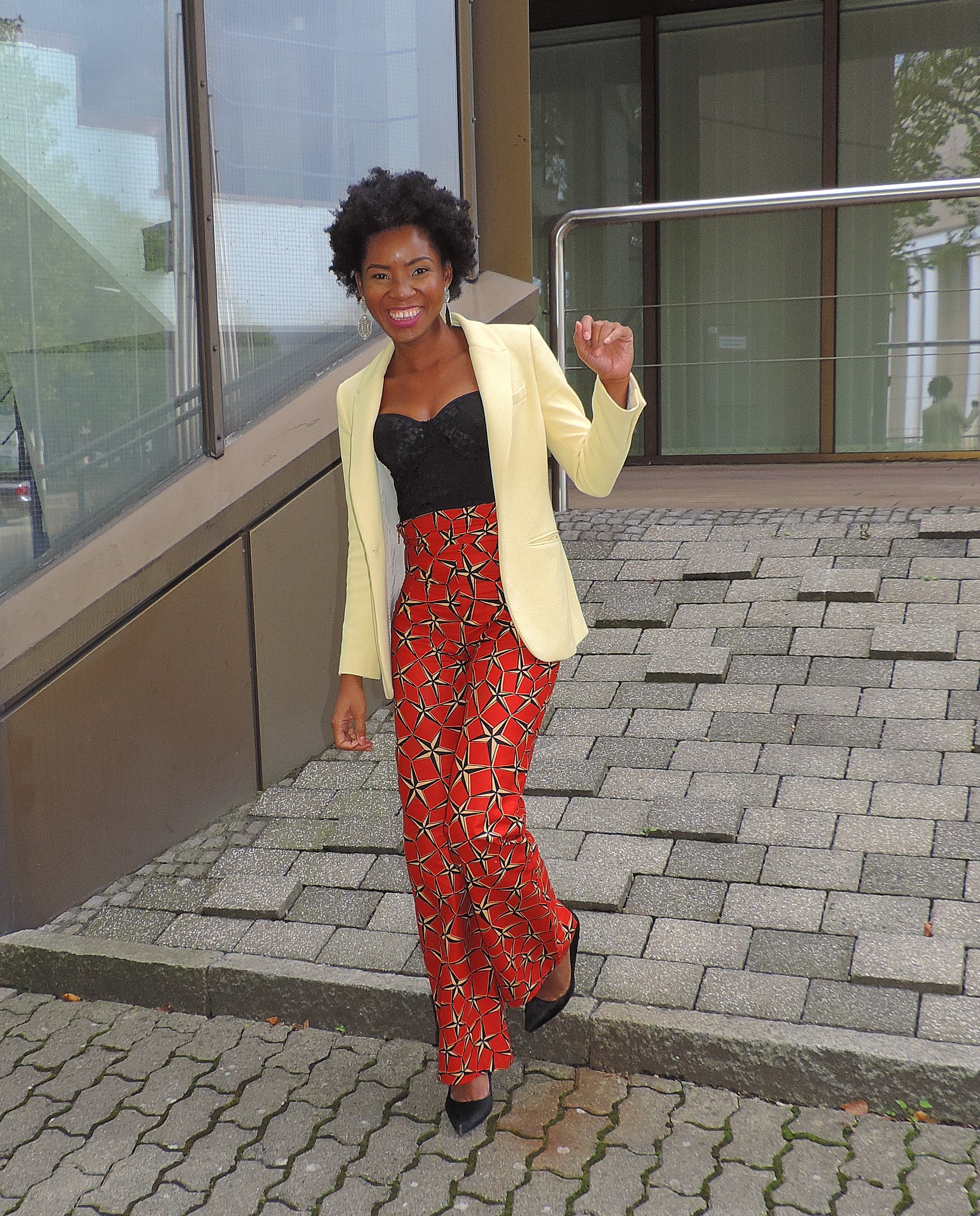 Since I’m all about African print this summer, I designed this high waisted wide leg pant which I paired with a yellow Zara blazer. One thing I love about African prints is that, you could pair them with different accessories and colours due to their colour combinations. I completed the look with a black pumps. With this look, you could easily go from day to night, by just removing the blazer.